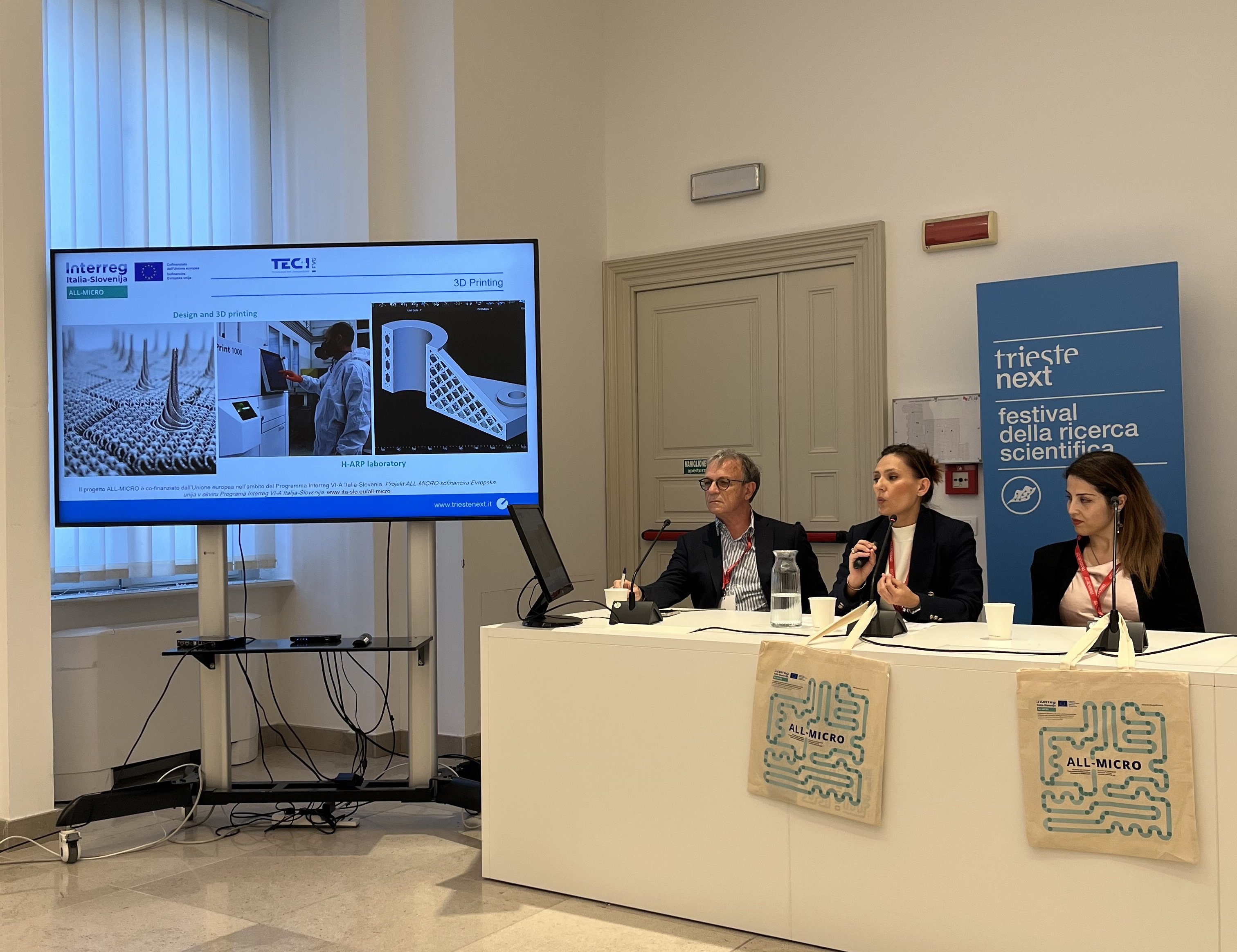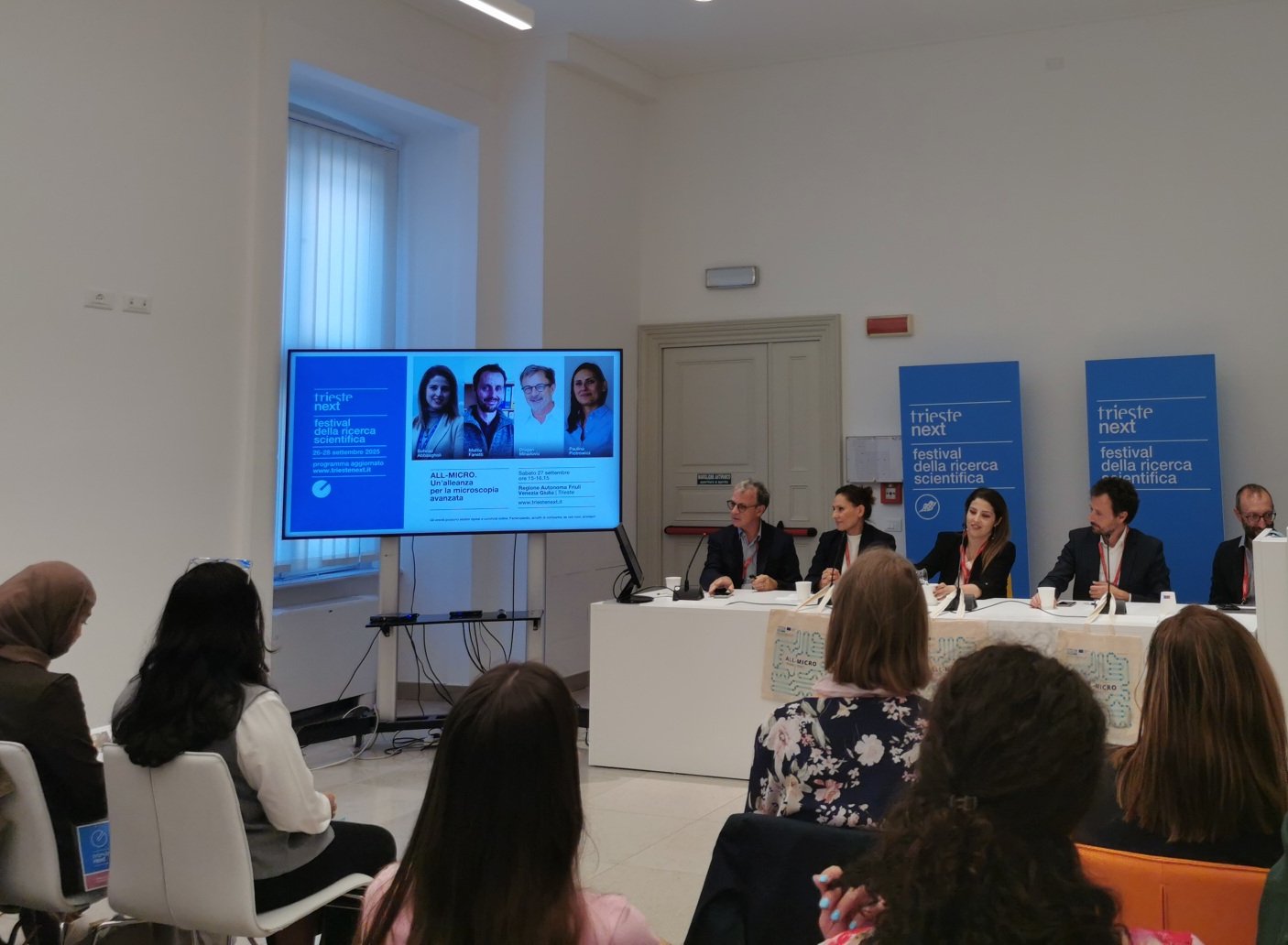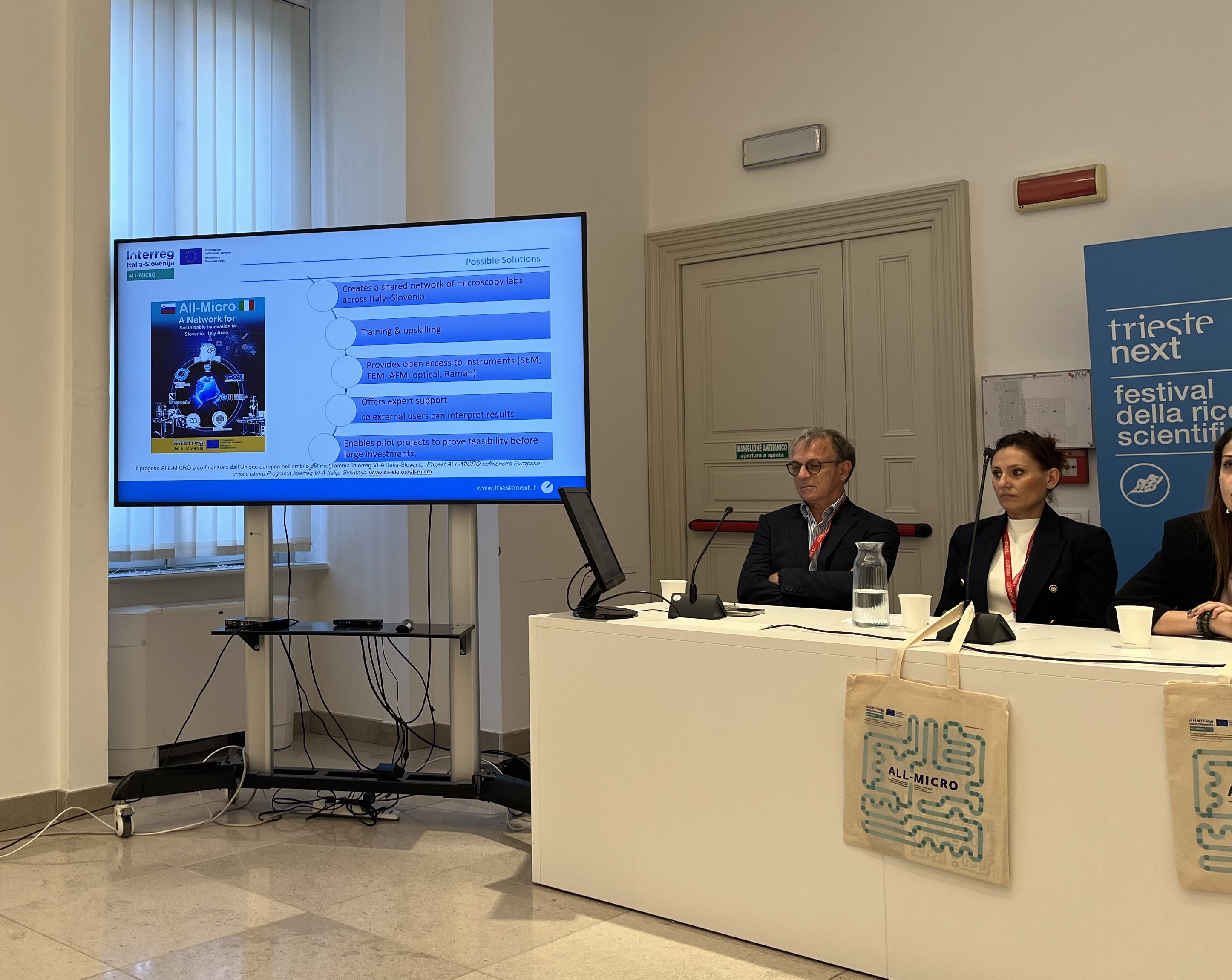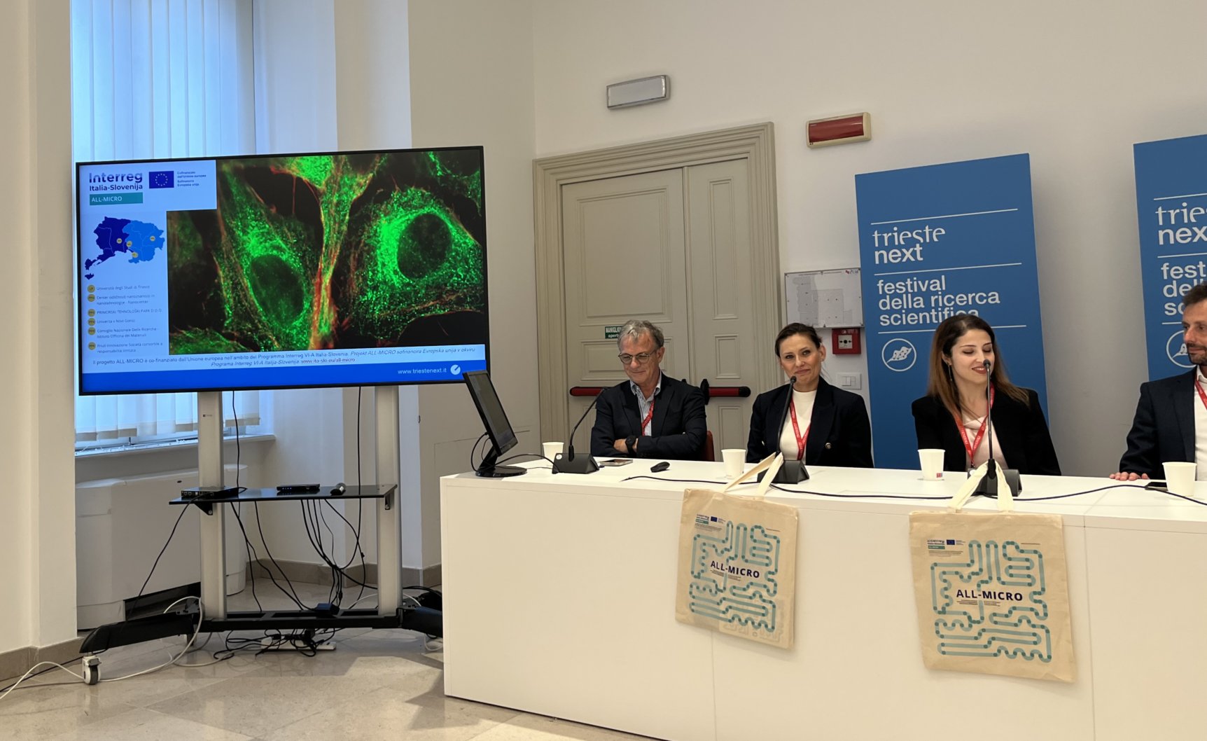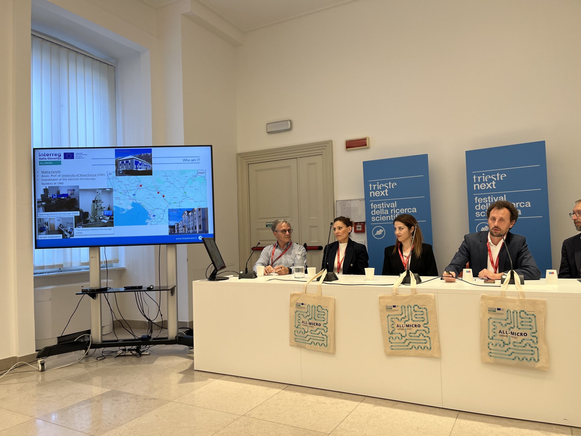 The presentation ALL-MICRO. An alliance for advanced microscopy was held on Saturday, 27 September in Trieste as part of the “Focus: Life Sciences” section of TriesteNext. The session featured contributions from researchers and project partners, including representatives from the University of Nova Gorica, CNR-IOM, TEC4I FVG and others, and was moderated by Gabriele Baj of the University of Trieste, coordinator of the ALL-MICRO project and of the interdepartmental microscopy center CIMA.