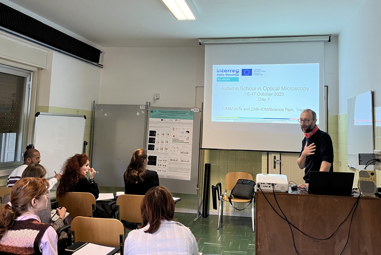L’Autumn School on Optical Microscopy si è svolta con successo presso l’Università di Trieste, in collaborazione con CIMA e CNR-IOM. Hanno partecipato quindici giovani ricercatori: 10 italiani, 3 sloveni e 2 croati, tra cui 10 dottorandi e 5 ricercatori post-doc.