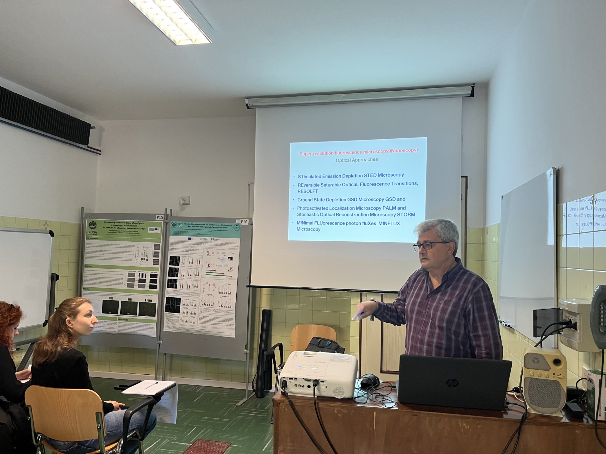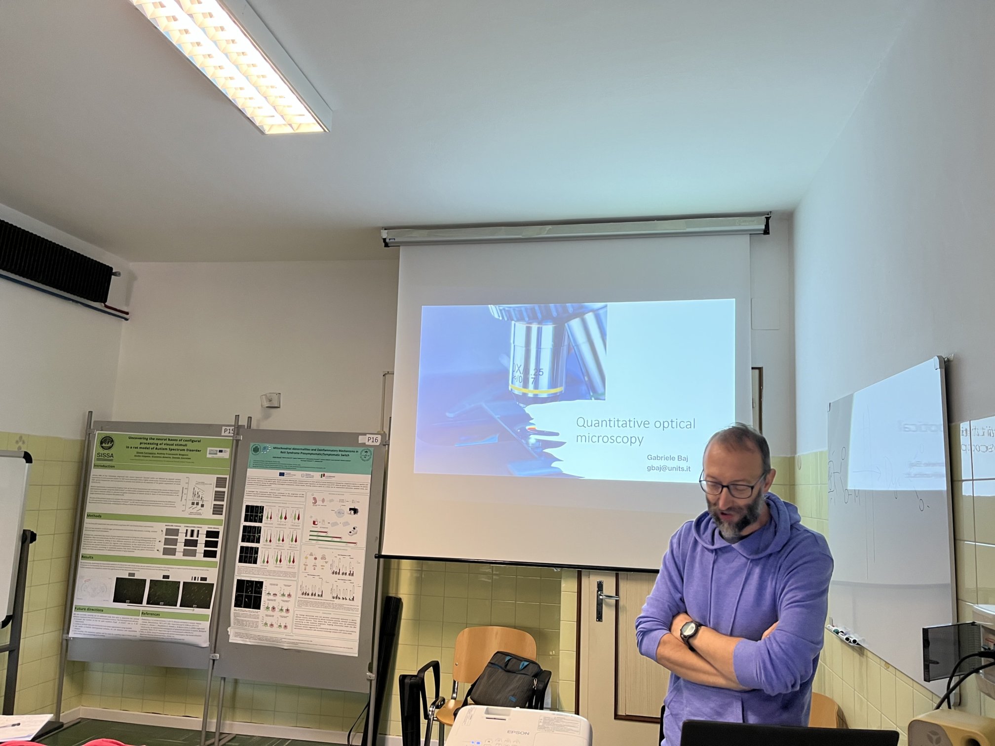 Il programma scientifico ha incluso lezioni sui principi di base dell’ottica, super-risoluzione, microscopia confocale, microscopia multifotonica, illuminazione strutturata, analisi delle immagini e microscopia quantitativa. Gli interventi sono stati tenuti da esperti di UniTs e CNR-IOM, seguiti da brevi presentazioni (“snap talks”) da parte di alcuni partecipanti.