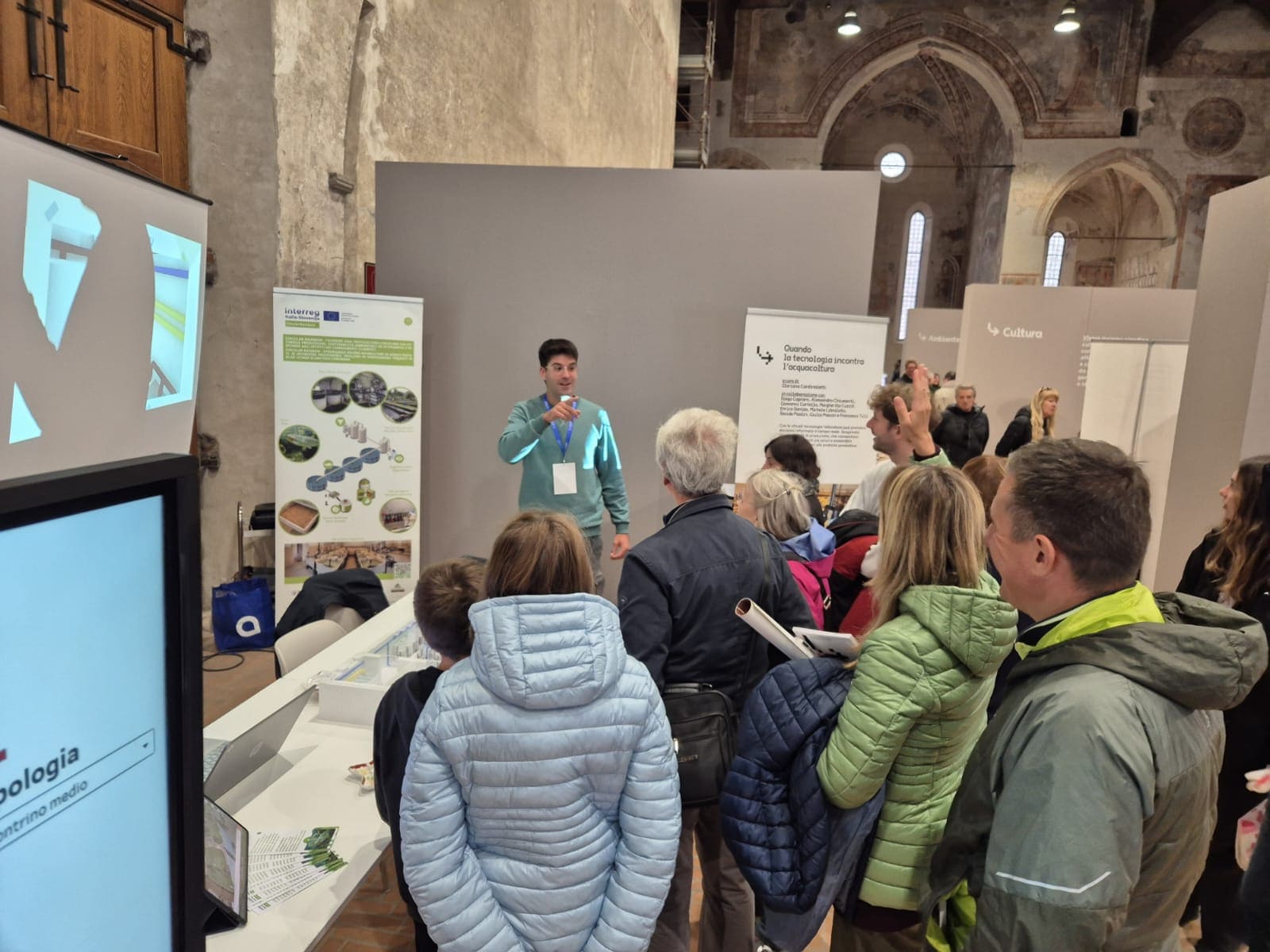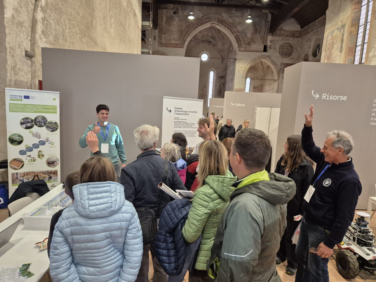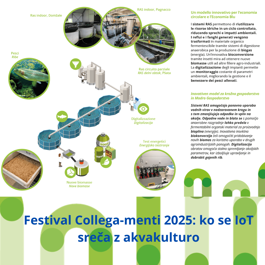 Nekaj utrinkov s sodelovanja projekta Circular Rainbow na festivalu Collega-menti 2025 v Vidmu: priprava, team, obiskovalci, interaktivna postavitev in ekipa UNIUD, ki predstavlja akvakulturo prihodnosti. Nov RAS Nov RAS Ekipa Univerze iz Vidma Ekipa Univerze iz Vidma Shema RAS Shema RAS Predstavitev projekta Predstavitev projekta Shema output - input RAS Shema output - input RAS Blato in nova biomasa Blato in nova biomasa Collega-menti 2025 Collega-menti 2025 Predstavitev Predstavitev Pilotni obrat RAS v Vidmu Pilotni obrat RAS v Vidmu Publika Publika David Paolin, mladi raziskovalec predstavlja David Paolin, mladi raziskovalec predstavlja David Paolin, mladi raziskovalec predstavlja David Paolin, mladi raziskovalec predstavlja Gloriana Cardinaletti in David Paolin Gloriana Cardinaletti in David Paolin David Paolin, mladi raziskovalec predstavlja David Paolin, mladi raziskovalec predstavlja Predhodna Naslednja